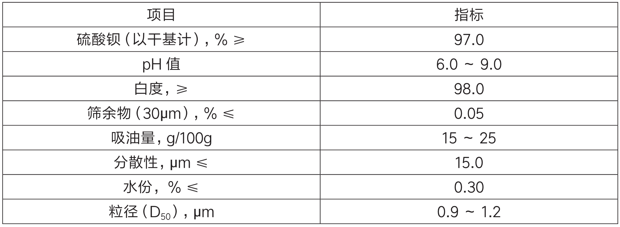 ◎特點:采用先進的改性技術對硫酸鋇進行表面包覆,使其具有白度高、粒徑分布均勻、含鐵量超低、流動性好等特性,各項控制指標均高于同行業相同產品的要求。在應用過程中與其加工產品的基質有很好的相容性和分散性,能有效提高用戶產品表面光澤度和機械強度。由于吸收 x 射線和 γ 射線,可提高產品的耐候性。